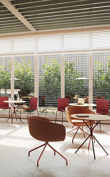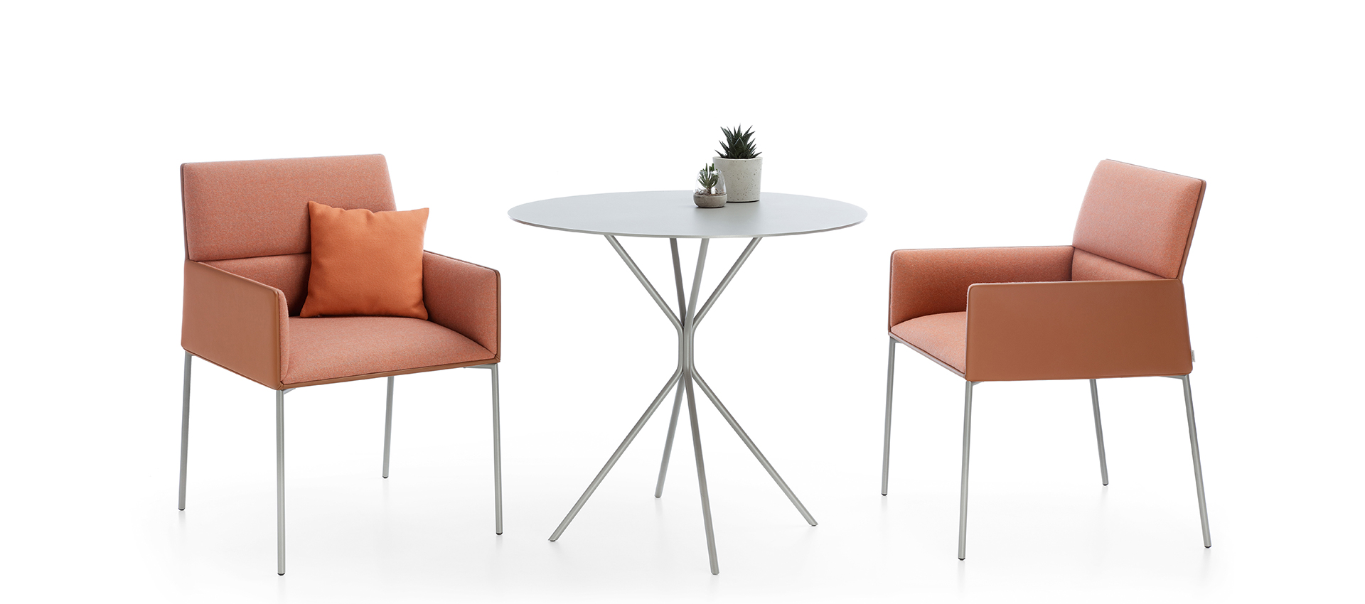 Mese caracterizate de forme și linii minimaliste. Având o gamă largă de finisări de blaturi, se pot folosi în cafenele, restaurante sau recepții.